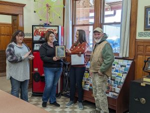 Greg Schuler holds his award plaque presented to him Friday morning (1/28/22)