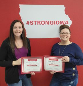 (Guthrie Center, Iowa) – Iowa State University Extension and Outreach, county offices in the southwest area, have announced award recipients for outstanding achievements in 2021. Krista Downing, Guthrie County Program Coordinator and Mollie Clark, Guthrie County Youth Coordinator received the Excellence in COVID Recovery award for developing and engaging partnerships that implemented innovation in programming. In the fall of 2020 and again in the fall of 2021 “Fall Feel Good” bags were delivered to 100 area farmers and 100 area small businesses. Items in the bag included resources for mental health such as; Iowa Concern magnets, stress balls, fidget toys, brain break games, exercise moves at a desk, healthy snacks, as well as a few other fun resources.