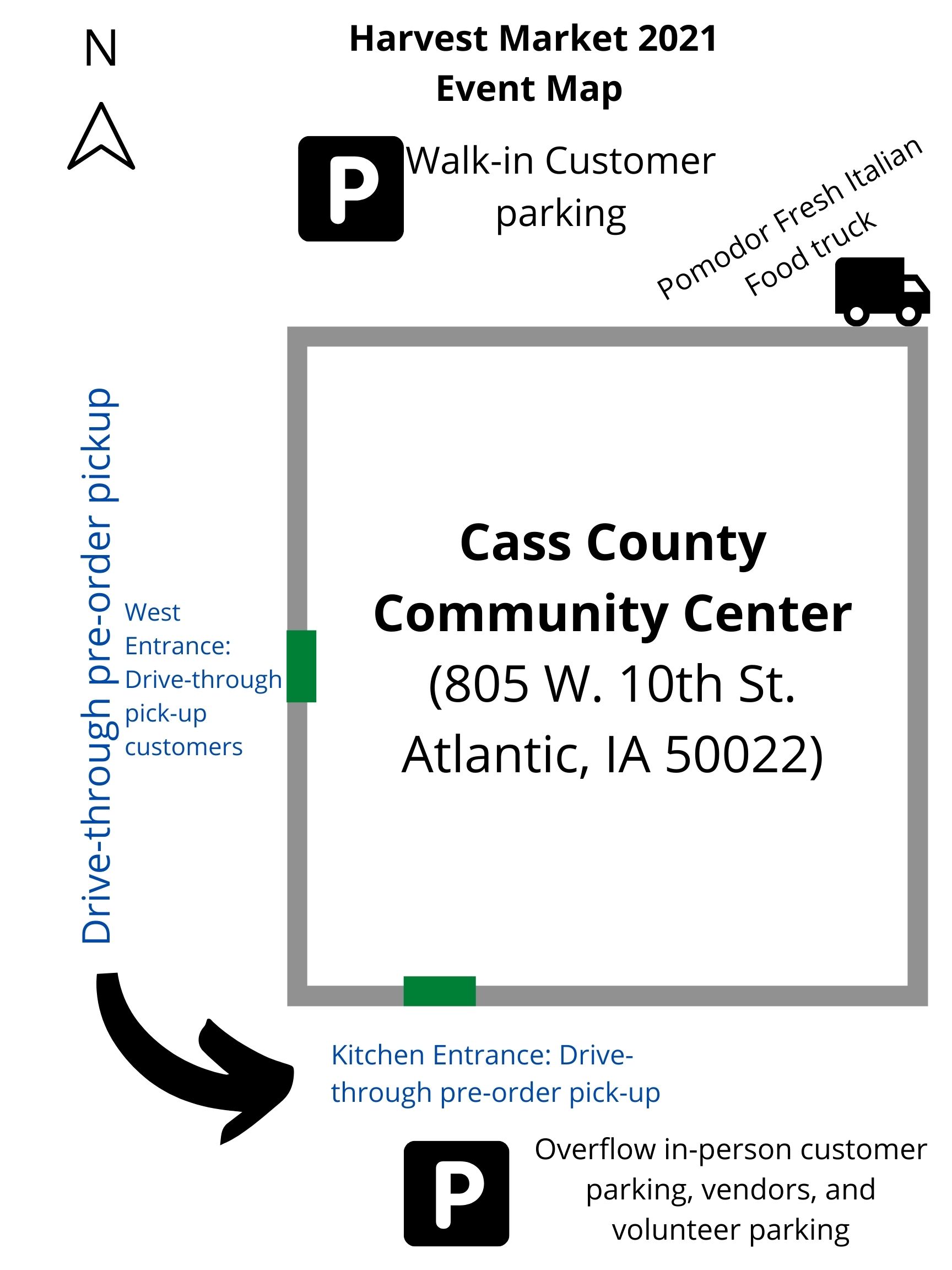 ATLANTIC, IA (November 22, 2021) – Today’s (Monday, 11/22) Harvest Market 2021 is expected to be a popular event. Produce in the Park has released an event map and is sharing tips to help customers prepare for a smooth shopping experience. Harvest Market will be held at the Cass County Community Center (805 W. 10th St. Atlantic, IA 50022) from 3-7 pm.