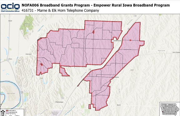 (Marne, Iowa) – Officials with the Marne-Elk Horn Telephone Company announced Thursday, that in the next several years, underserved Internet customers in western Iowa will be served with Marne Elk Horn fiber Internet after the company completes fiber projects in the region. The company announced that they have accepted the $4.5 million grant award from the Empower Rural Iowa Broadband Grant program, which was announced in September, as well as the locations of the fiber projects they will be doing.