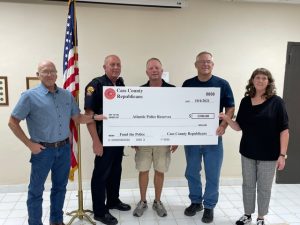 (Atlantic, Iowa) – The Cass County Republican Party has raised funds for the Atlantic Police Reserves, as part of the political organization’s “Fund the Police” efforts. A check for $1,500 was presented Monday at the American Legion Memorial Building (the Armory). Atlantic Police Lt. Devin Hogue says the proceeds came from a raffle held by the Cass County Republicans.