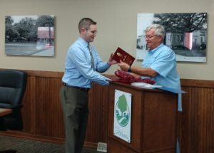 (Atlantic, Iowa) – Three City of Atlantic employees were presented with plaques and received congratulations from the City Council, for their 10 years of service to citizens of the community. Mayor Dave Jones made the presentations.