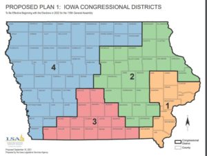 (Radio Iowa) – Plan 1 for Iowa redistricting has been released, with redrawn boundaries for Iowa’s congressional districts showing NO potential match ups between incumbents. District lines are redrawn every 10 years, after the Census, to account for population changes. Congresswoman Ashley Hinson of Marion, a Republican, lives in the proposed first congressional district, which would cover a dozen counties. The cities in Cedar Rapids, Iowa City, Davenport, Burlington and Fort Madison would be in that first district.