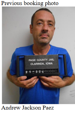 Deputies with the Page County Sheriff’s Office, Wednesday, served a Page County arrest warrant on Andrew Jackson Paez. The warrant was for Violation of Probation – Sentencing Charge of Arson 2nd Degree. Bond on this warrant was set at $25,000.00 by a Judge.