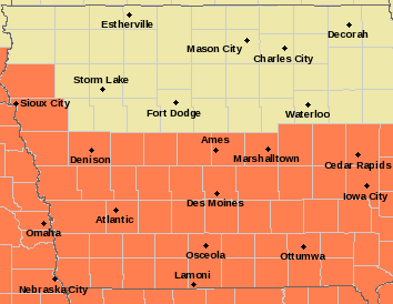 * WHERE…Central and Southern Iowa, roughly Highway 30 and south.