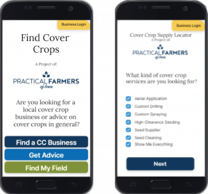(Radio Iowa) – The non-profit group Practical Farmers of Iowa is launching a new smartphone application designed to make it easy for farmers to make decisions about cover crops in time for fall planting. Sarah Carlson, P-F-I’s strategic initiatives director, says the free app, called Find Cover Crops, aims to be a helpful resource and a time-saver. “Farmers can search with geolocation cover crop business services that are nearby their farm,” Carlson says. “So if you need somebody to custom drill, if you need to find an aerial applicator, or if you need to find seed or any other cover crop services, you can find those locations, find those businesses, reach out to them and hire their services.”