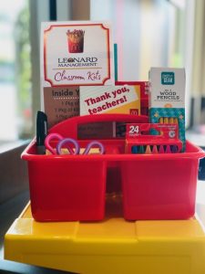 In addition to the school supply kits, teachers will have a chance to win prize giveaways. In all, Leonard Management Group is donating more than $30,000 in school supplies to teachers across Nebraska, Iowa and South Dakota.