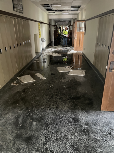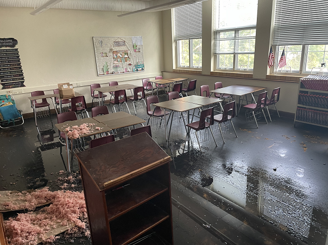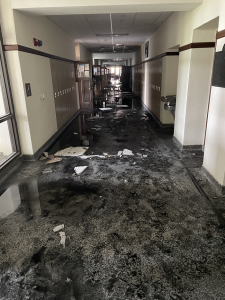 Atlantic Middle School (AMS) Principal Josh Rasmussen, Friday (today) sent to the local media (including KJAN), pictures of the damage caused by Tuesday’s fire and the copious amount of water used to fight the flames and save the building. Superintendent Steve Barber said the building will not be open for students when classes begin on August 23rd. Administrators are currently working through the process of placing students, but one thing is clear according to Barber: remote learning is not an option being considered.