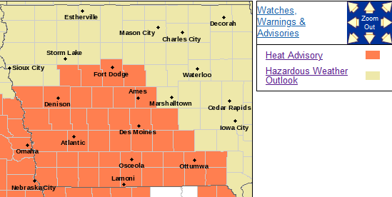 424 PM CDT Wed Jun 16 2021 …A HEAT ADVISORY IS IN EFFECT FROM 1 PM TO 8 PM CDT THURSDAY FOR ALL OF SOUTHWEST, MUCH OF WEST CENTRAL AND SOUTHERN IOWA…