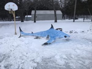 Second place, with 33 votes, went to Patrick Garland, who created a Train snow sculpture, that looked like it could have been ridden. And, with 32 votes, a Shark sculpture by Ryan Kenneth Means, took third place. The contest began February first and concluded Feb. 28th.