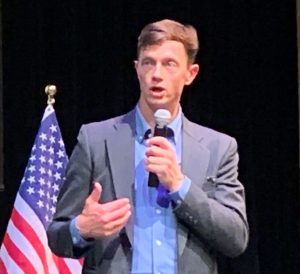 State Auditor Rob Sand, a Democratic candidate for governor, spoke tonight to a crowd in Waukee. (RI photo)