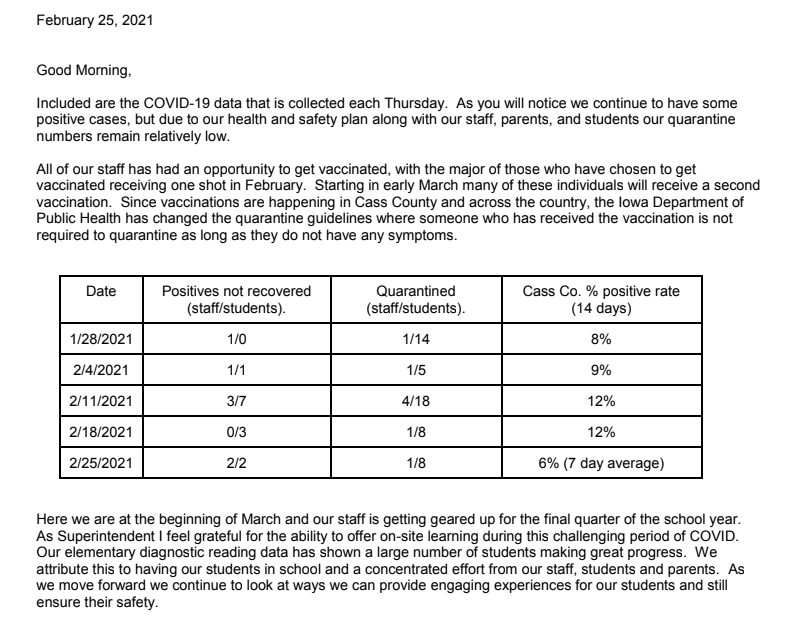 Atlantic School District Superintendent Steve Barber, Thursday (Today) issued an update with regard to COVID-19 and the District. You can read the message in its entirety, below: