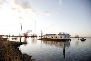 FILE – In this Oct. 22, 2019 file photo, a home is surrounded by Missouri River floodwaters in Bartlett, Iowa. A judge has ruled that the federal government must pay landowners on the lower Missouri River for flooding damage caused by the Army Corps of Engineers’ efforts to protect endangered species. Judge Nancy Firestone, with the U.S. Court of Federal Claims, ruled this week that the Corps caused increased flooding by changing habitat on the river to comply with the Endangered Species Act. (AP Photo/Nati Harnik File)