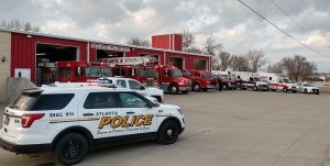 Among the vehicles and personnel on-hand for Wednesday evening’s event, in addition to Atlantic Fire Fighters, were those from Medivac Ambulance, the Atlantic Police Department, Cass County EMA Director Mike Kennon, and the Cass County Sheriff’s Office.