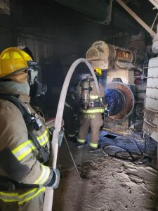 Cappel said when they arrived they found smoke showing through the top of the building, which turned out to be a staircase to the elevator. The fire was coming from a pellet mill. The pellets come out at around 160-to 180-degrees he said, and drop into a cooler in the basement area of the feed mill until they are dry and at room temperature.