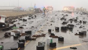 Batteries litter the road following a fatal crash in Clayton County. (ISP Photo)