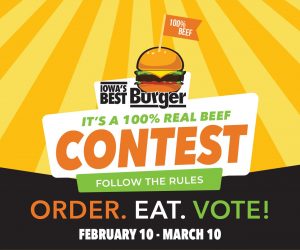 To qualify to be named Iowa’s Best Burger, the burger must be a 100% real beef patty and be served on a bun or bread product. Restaurants can download a digital toolkit including promotional materials for the contest from IBIC’s website at www.iabeef.org, to promote the contest to their customers. The promotional materials can be used in restaurants, online, or on social media.