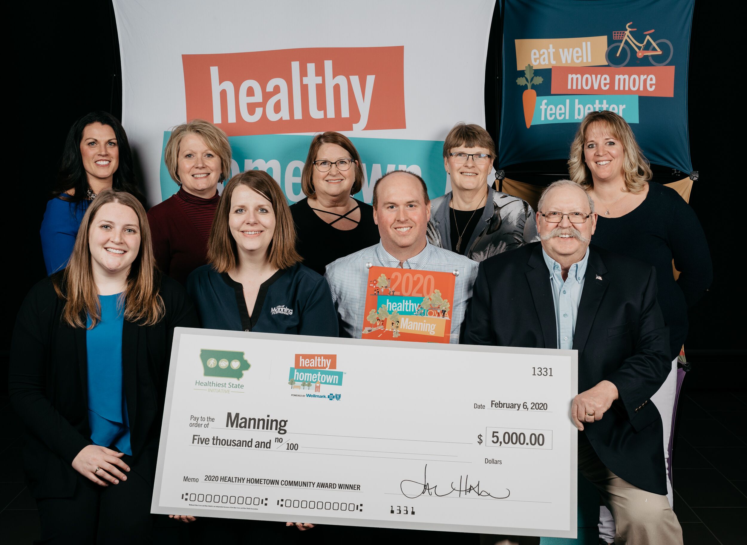 DES MOINES, IA (Feb. 7, 2020) — Officials with the Iowa “Healthiest State Initiative” have announced the winners of the 2020 Healthiest State Annual Awards. The winners were recognized for their efforts to improve the physical, social and emotional well-being of their students, employees and fellow Iowans. Among the winners in six categories, was the City of Manning, which was announced the winner of the 2020 Healthy Hometown -Powered by Wellmark – Community Award. The award was presented Thursday, Feb. 6th.