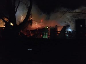 Firefighters from Anita and Wiota, with assistance from Cumberland and Massena, remained on the scene of a large machine shed fire southeast of Wiota, late Friday night. The blaze at 71737 Jackson Road, was reported at around 9:20-p.m. A nearby residence was unoccupied when law enforcement arrived on the scene. Crews worked to protect the home from the flames, which were being blown in the direction of the home.