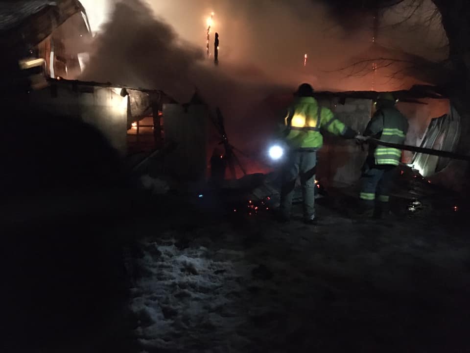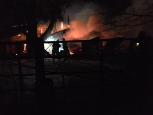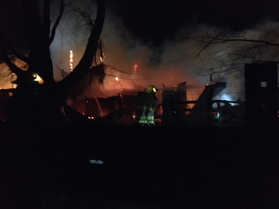 Authorities say it appears the blaze started in the center of the building, which was completely destroyed, along with some pieces of farm machinery stored inside the structure. No injuries were reported.