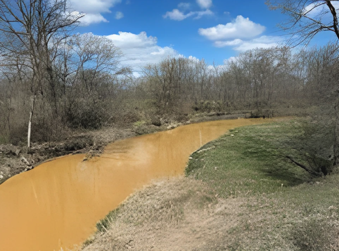 Brown, murky water flowing at the South Branch of Lizard Creek in Fort Dodge