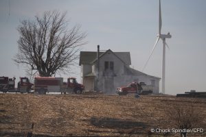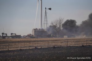 Highway 25 was closed for a while due to dense smoke. Area farmers showed up en masse to disk fields to create fire breaks. Water tankers constantly refilled the multiple brush trucks as firefighters worked the field fire, while several pumper/tanker crews attacked the fire in an abandoned house. Several outbuildings, an RV and the house were damaged or destroyed in the flames.