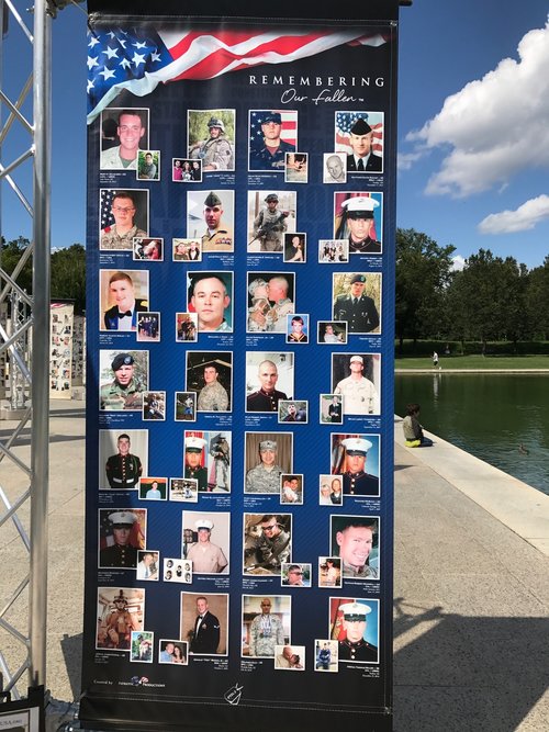 The memorial includes 31 Tribute Towers with military and personal photos of over 5,000 of our nation’s Fallen since 9/11/2001. The memorial was unveiled nationally at the steps of the Lincoln Memorial in Washington, D.C. on Thursday, September 7, 2017. Organizers are still asking for help in contacting Gold Star families to include every single American who has died since 9-11-2001 in The War on Terror. There is no fee to families. They are asked to visit the web site www.PatrioticProductions.org, and provide basic information and two photos for their Fallen loved one.