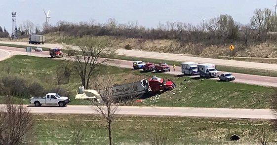 Rescue crews were called to the scene of an injury accident at around 1:30-this afternoon. The accident happened on Interstate 80 westbound near Exit 75. Pictures from the scene show a semi tractor-trailer that looked like it may have rolled over, in the grassy area between the interstate and exit ramp. No other details are currently available.