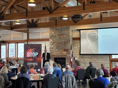 The Stop the Scammers 22-stop statewide fraud education campaign kicked off today (April 11, 2025) in Windsor Heights. (Photo courtesy Nick Meyer w/the LS2 group)