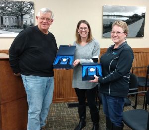 Atlantic Police Sergeant Spencer Walton was given a plaque for his 10-years of outstanding service, and in keeping the community safe. Youth Services Librarian Julie Tjepkes, who has served the Atlantic Public Library for 32-years, and Adult Services Librarian Diane McFadden, who has served for 30-years, were also honored with awards.