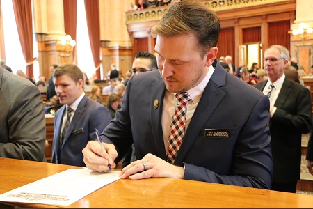 Des Moines—Ray “Bubba” Sorensen II (R-Greenfield) was sworn into the 88th General Assembly at the Iowa Capitol to represent House District 20 today (Monday). The district was previously represented by Clel Baudler (R-Greenfield) and includes the counties of Adair, Guthrie, and portions of Dallas and Cass.