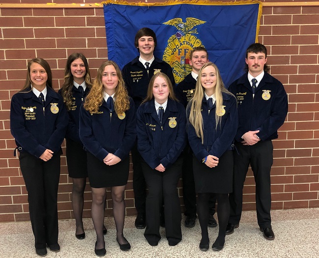 2020-21 FFA Seniors: Left to Right Back Row -Taylor McCreedy Alyssa Derby, Garrett Reynolds, Craig Becker, Gunner Kirchhoff; Left to Right Front Row – Hannah Carlson, Bethany Anderson, Caroline Pellett.