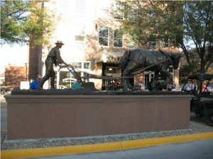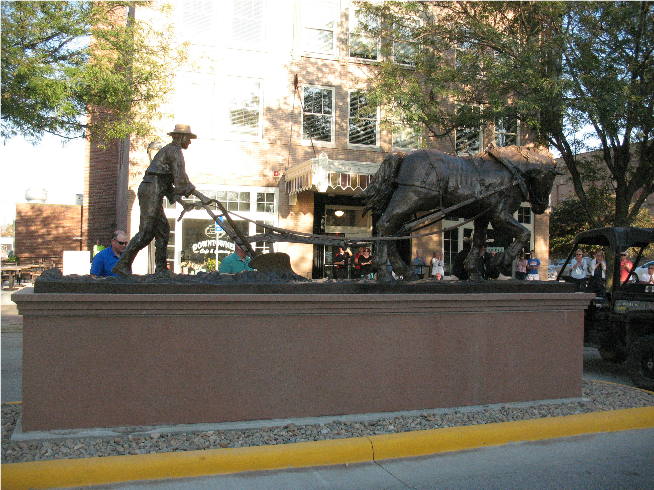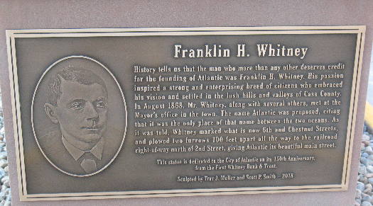 A beautiful bronze statue of a man, his horse and a plow were unveiled Tuesday evening in downtown Atlantic, as part of the City’s 150th Birthday, and its founder Franklin H. Whitney. The President and CEO of First Whitney Bank and Trust, Paul Gude spoke about the man depicted by the statue plowing furrows for what was known as Main Street, and later became Chestnut Street. Gude said Whitney was a visionary in making Atlantic grow, as evidenced by a plaque in his honor on the south side of the statue.