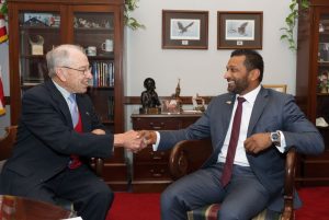 U.S. Sen. Chuck Grassley, left, meets with Kash Patel, who was confirmed Feb. 20, 2025 as the new FBI director. (Photo courtesy of Grassley’s office)