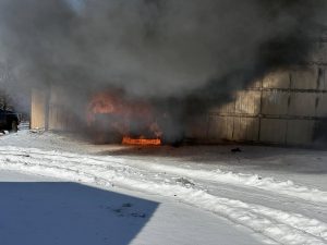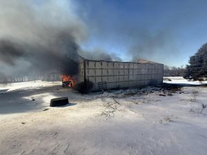 The building and property inside are a total loss, but a dollar amount of the damage was not immediately available. The owners were identified as Christian Vanscyoc and Mariah Cody.