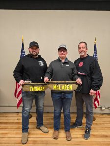 Recent Retirees receiving Ax Plaque: Rich Smith, Russel Peck, John Johnson