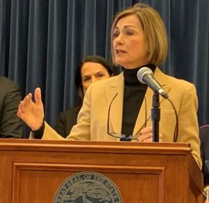Governor Kim Reynolds speaking at a news conference on Feb. 18, 2025. (RI photo)