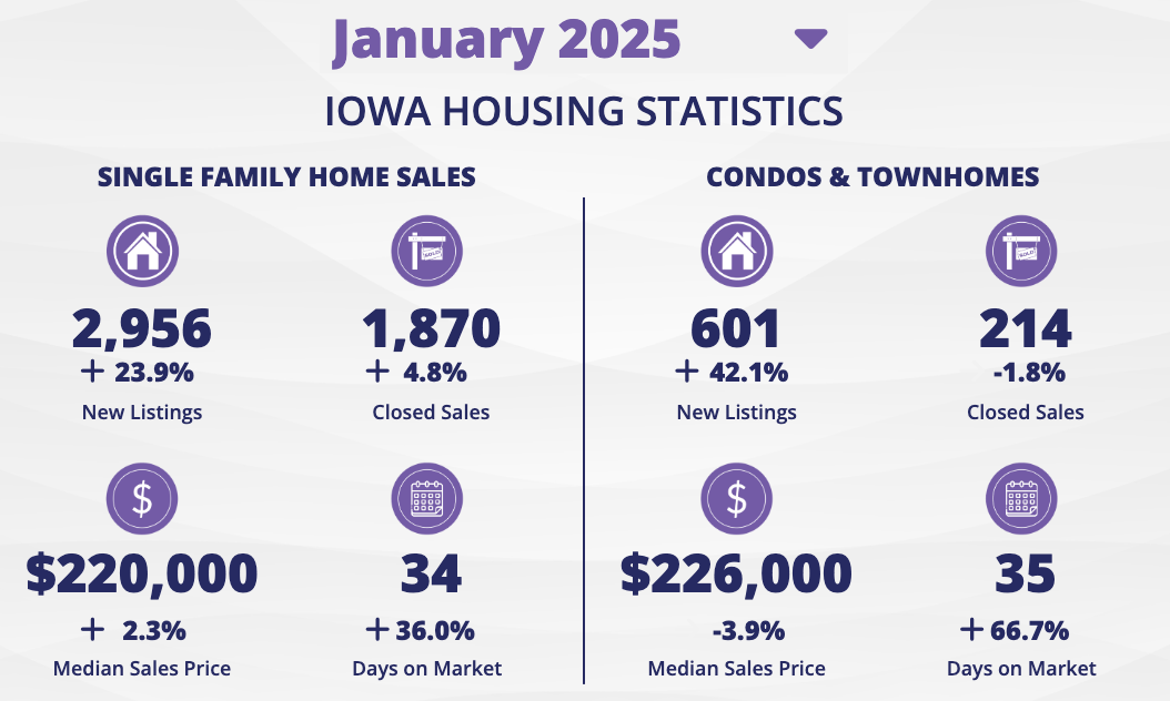 (Radio Iowa) – There was an uptick in Iowa home sales in January, plus a dramatic increase in the number of homes put up for sale. According to data from Iowa REALTORS, there was a four-point-eight percent increase in the number of home sales that closed last month compared to January of last year. The group’s president says that’s an indicator home buyers are accepting higher interest rates as normal. The median price for Iowa home sales in January was 220-thousand dollars — that’s up two-point-three percent from a year ago. The number of Iowa single family homes listed for sale in January grew by nearly 30 percent.