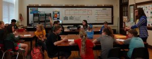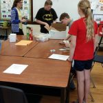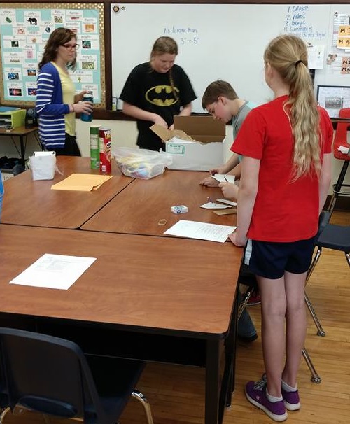 MS Science Teacher Kara Martin (right) explains the rules to students before they begin working on their shipping containers.