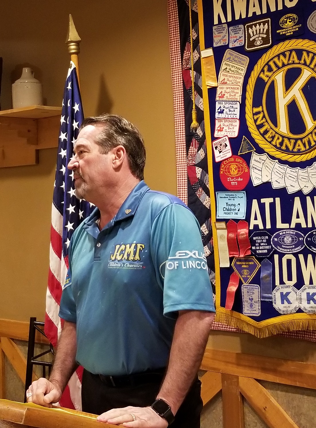 Blake Collingsworth speaks to the Atlantic Kiwanis Club on May 10, 2018 about the Josh the Otter Program