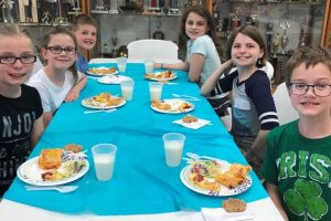 The East Pottawattamie County Extension and Outreach and 4-H program offered “Cooking with Kids” after school program on Wednesday’s in April at the Carson Fire Station for all 4th grade youth. Youth spent the afternoon learning about basics and safety of cooking and baking, measuring, reading a recipe, using kitchen utensils and appliances, washing dishes, setting a table, manners and working together. Throughout the 4 sessions, youth learned to crack eggs, cook meat to the safe internal temperature, dice up meat and fruit, use the stove top, oven, blender, griddle, make French toast, mini chicken pot pies, fruit smoothies, peanut butter cookies, homemade pizza, toss salad, and fruit salad all while getting to taste test and learn how to perfect their recipes. Youth also created a cookbook with a collection of all of their recipes along the way.