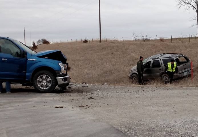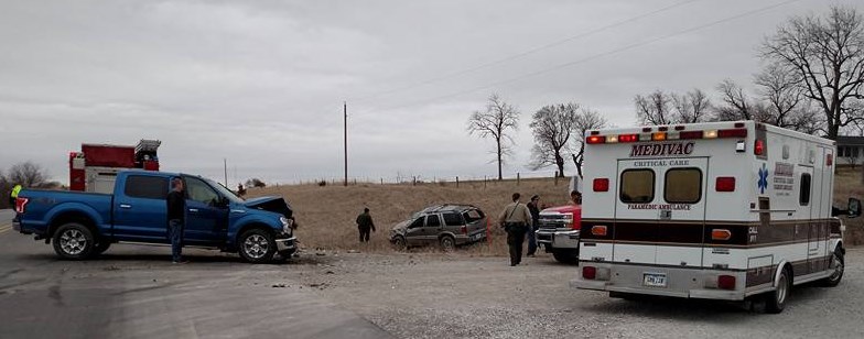Two people were transported by Medivac Ambulance and Atlantic Rescue to the Cass County Memorial Hospital Monday afternoon, following a collision northeast of Atlantic at Highway 71 (650th Street) and Fayette Road. Cass County Chief Deputy Sheriff John Westring said a blue Ford F-150 pickup was traveling north on Highway 71 at around 1:10-p.m. when a Chevy Blazer traveling east on Fayette Road, pulled out onto the Highway. (Click on photos to enlarge)