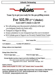Pelgas will fill the tanks and work with students to see the tanks are returned. York said you don’t have to be home for your tank to be picked up or dropped-off. There is also a private shuttle option, where you can purchase your fill and receive a tag, and when you are ready, take the tank to Pelgas and get it filled. Kristy York said Pelgas will honor those tags through early this Summer, so even if your tank is still full, you can refill it if you are a heavy outdoor griller. She added that if you do have more than one tank to fill, each additional tank is only $25. 100 percent of that, she said, will go back to the swim team.