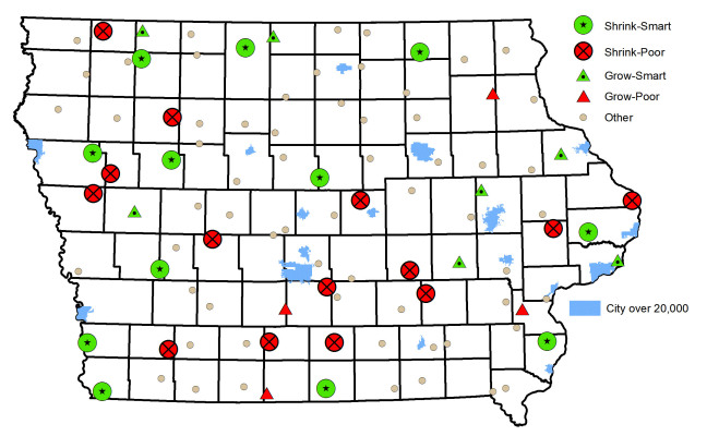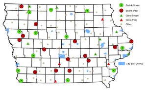 Iowa State has been tracking life in towns with fewer than ten-thousand (10,000) people in each of the state’s 99 counties since 1994. In these shrink-smart towns, citizen have managed to bridge divides created by economic class, ethnicity and gender. “People in these towns rated their communities as having a culture of openness and support,” Peters explained. “So, residents said they felt safe in their towns, they felt they could trust their neighbors, and they felt the community was supportive of themselves and others.”