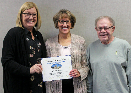 Officials with the Cass County Health System report that at the Monday business meeting for the Cass County Board of Health, Pat Markham was presented with a Certificate of Appreciation for more than 30 years of service on the Cass County Board of Health. Markham is resigning from the board as she will be relocating outside of the county after the New Year and will be ineligible to fill the position.