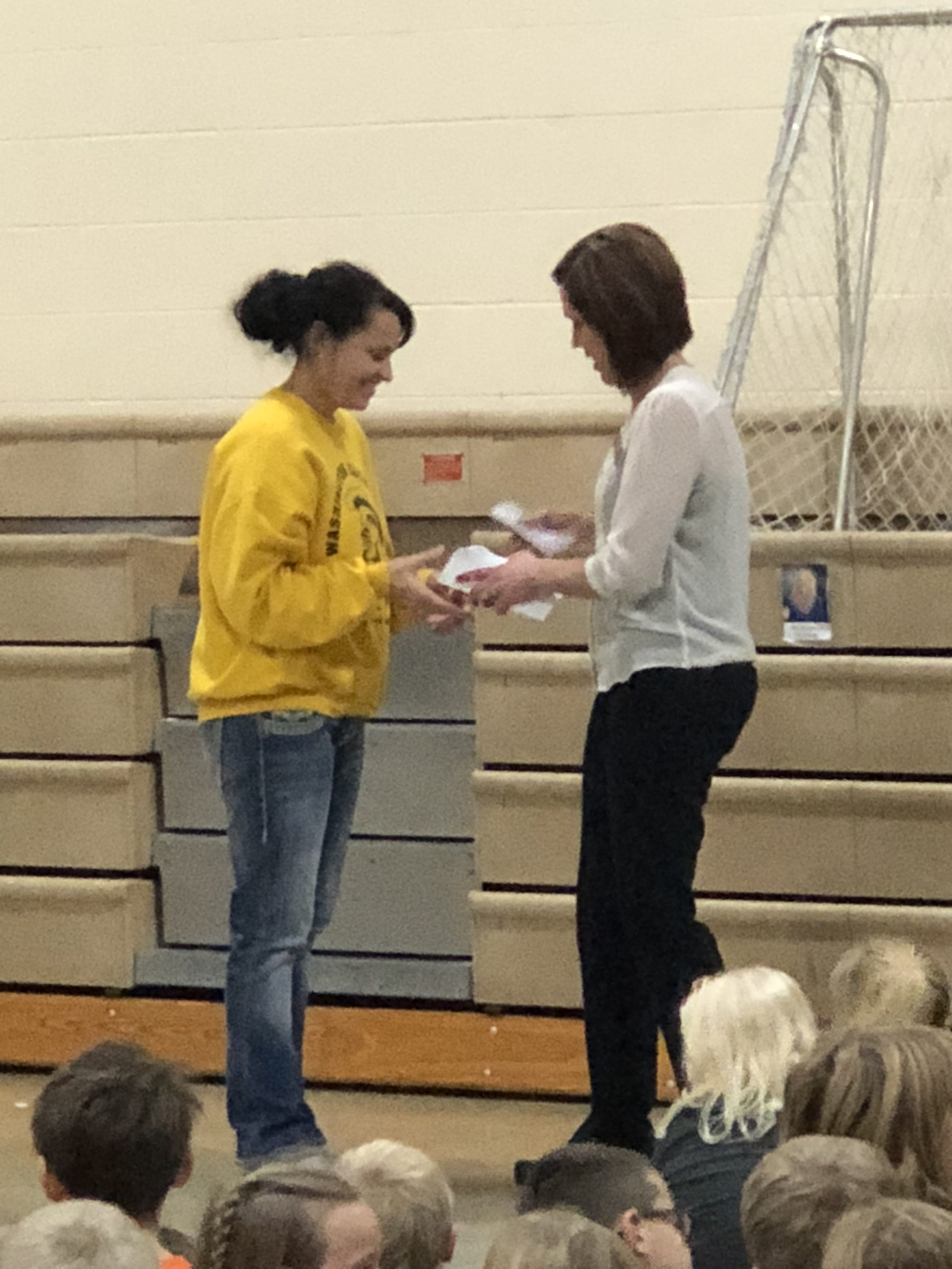 Assistant Hy-Vee Director Stephanie Dagel, also presented Washington Elementary with 10,000 box tops. Atlantic was one of three stores to win a General Mills contest. The box tops can be cashed-in by the District to purchase whatever supplies the schools may need. Superintendent Steve Barber extends a big Thank You to the Atlantic Hy-Vee, for their donations!