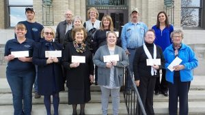 Nonprofit representatives receiving grant awards 1st row, left to right: Sara Young, Anita Public Library; Shiona Putnam and Lila Hoogeveen, Cass County Historical Museum; Sue Petersen, Griswold Public Library; Linda Eilts, Massena Public Library; Earlene Krauth, Massena Historical Society. 2nd row: Brad Amos, Griswold Rescue; Sandy Fairbairn, Hitchcock House; Wendy Wittrock, Anita Child Care; Tim Pope, Lewis First Responders & Firefighters Association; Sara Wood, Atlantic Youth Sports Organization. Back row: Mark D. Kyhnn, Cass County Community Foundation; Dianna Williams, Ann W. Wickman Child Development Center;
