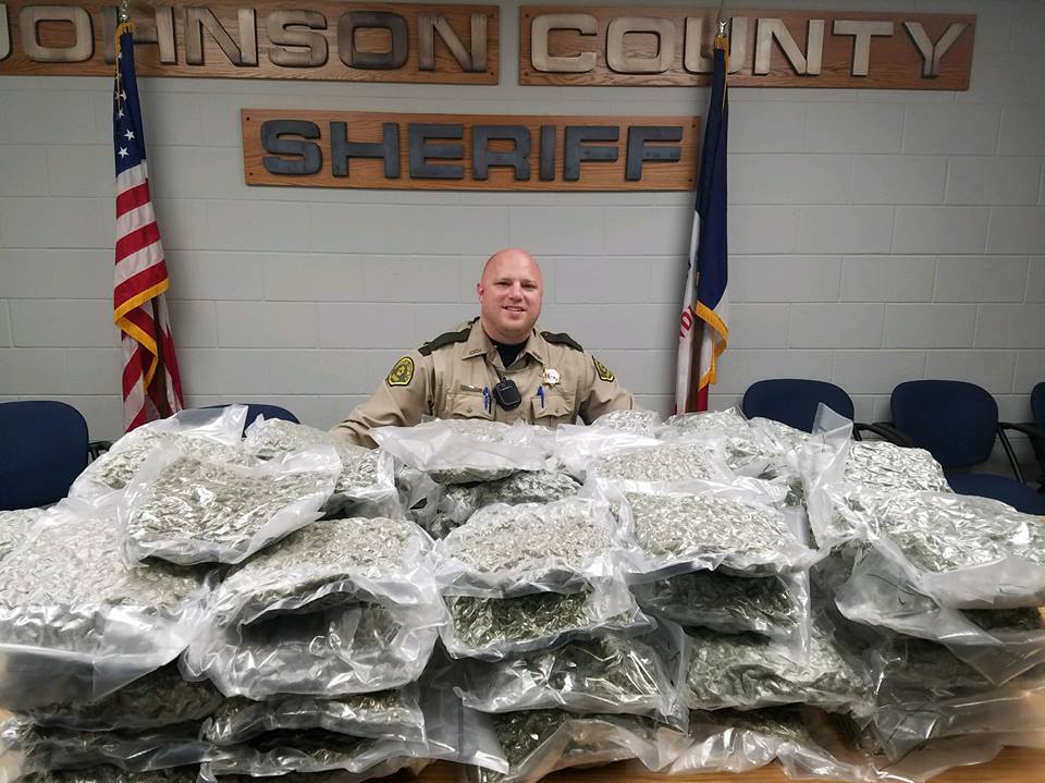 A sheriff’s deputy in eastern Iowa made a big drug bust Thursday night. The Johnson County Sheriff’s Office posted a photo to Facebook showing Deputy Cody O’Hare with a big pile of marijuana.