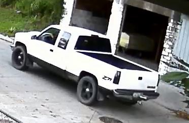 Police in Council Bluffs, today (Tuesday), released images of a vehicle whose occupant or occupants is believed to have been involved in shooting incidents Sunday morning. The still-frame images are from surveillance video. They show a white GMC or Chevy Z71 extended cab truck. If you have seen a vehicle matching the images shown below, please contact Crime Stoppers at (712) 328-STOP (7867). Police warn you should not approach the truck or the occupants, who are considered to be armed and dangerous. (A summary of the original story about the incident follows…)