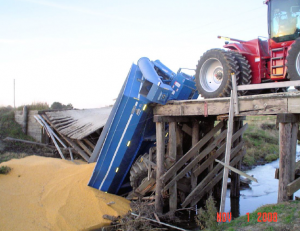 Bridge collapse under heavy grain/tractor load in Audubon County (2008 file photo)